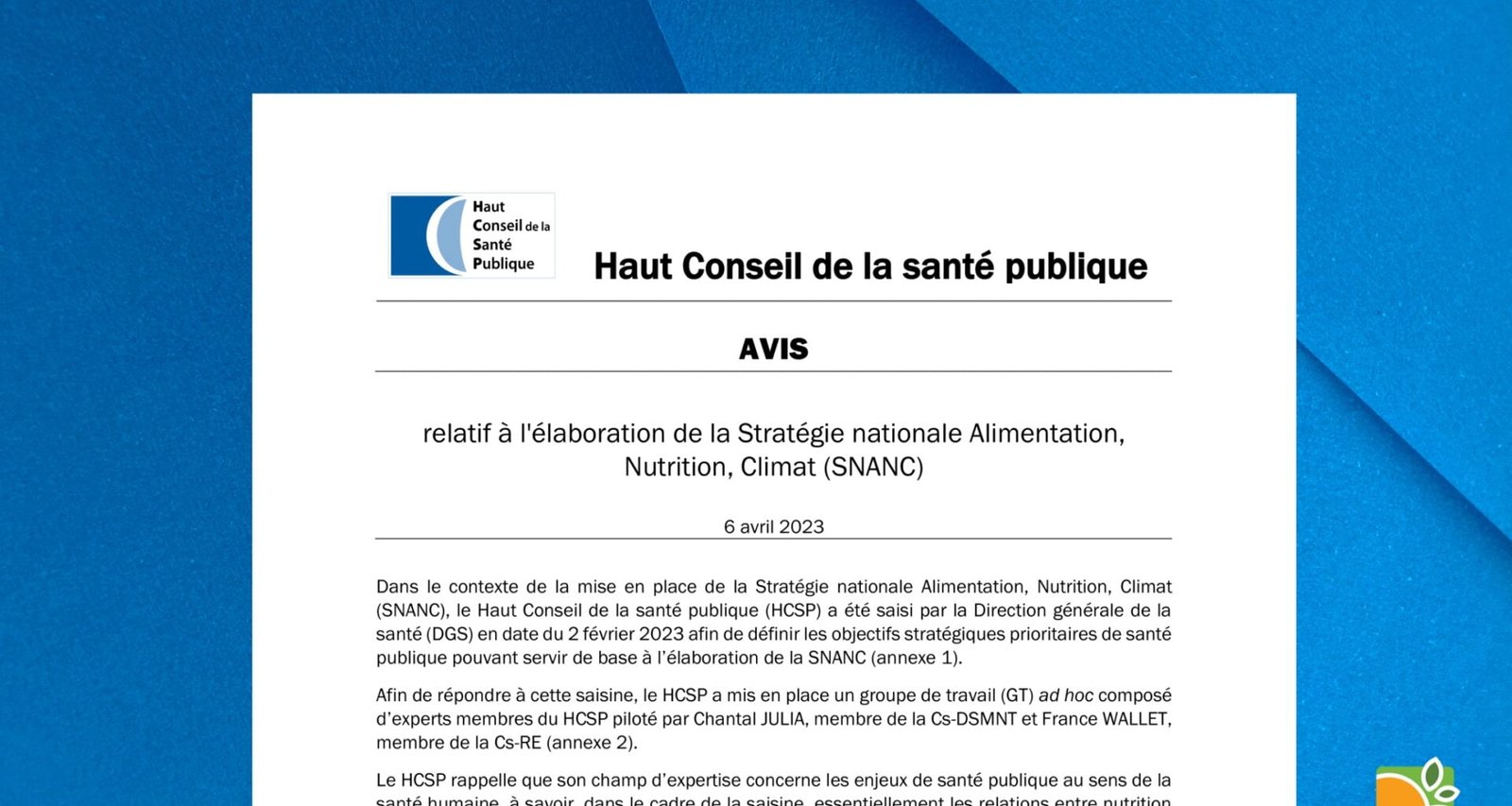 Avis du Haut Conseil de la santé publique relatif à l’élaboration de la Stratégie nationale pour l’alimentation, la nutrition et le climat (SNANC), 4 avril 2023.