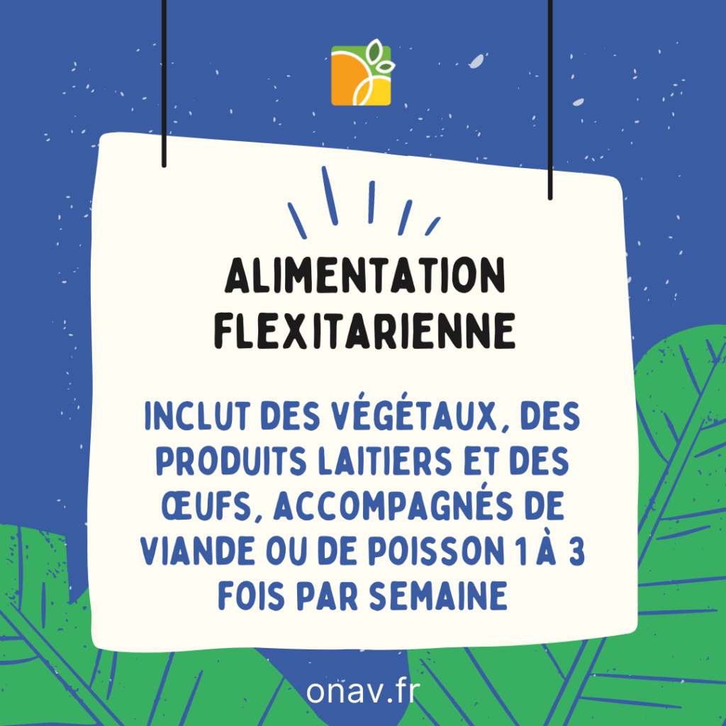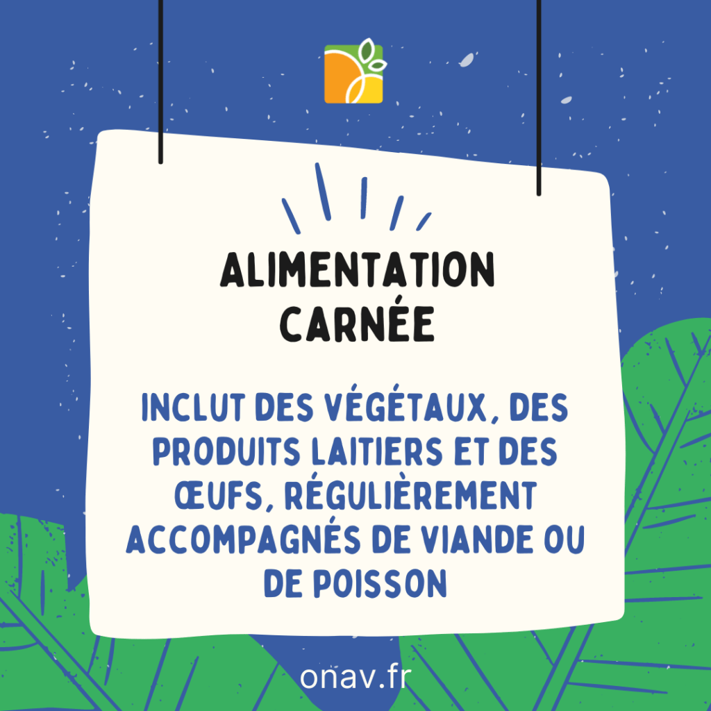 Alimentation qui inclut des végétaux, des produits laitiers et des œufs, accompagnés de viande ou de poisson 1 à 3 fois par semaine.
